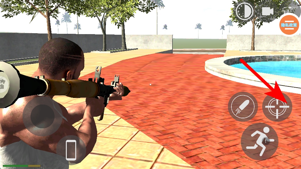 4、按箭头指引,点击瞄准按钮锁定目标,使用武器进行攻击,完成战斗相关的关卡目标。