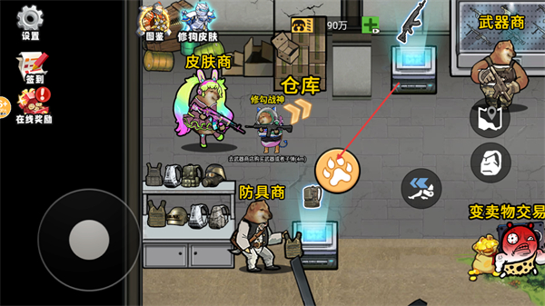 2、或是在游戏主界面中,找到皮肤商,点击爪印图标按钮与其进行交互进入游戏皮肤商城。