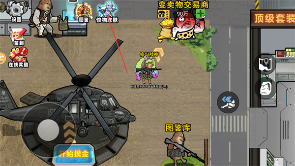 1、打开修勾三角洲游戏主界面后,点击上方的修狗皮肤选项按钮即可进入游戏商城。