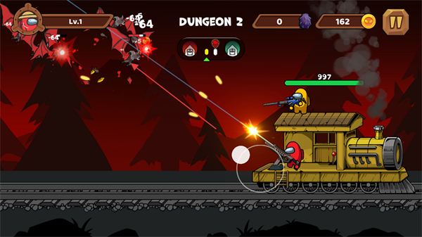 2、持续射击空中和地面敌人,快速清理怪物群,保护火车前进。