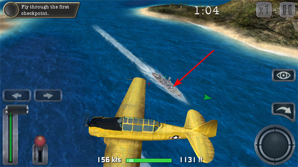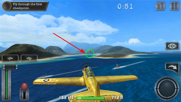2、驾驶飞机穿过检查点,这是推进任务的核心操作,穿过时需关注检查点的位置并调整飞行方向。