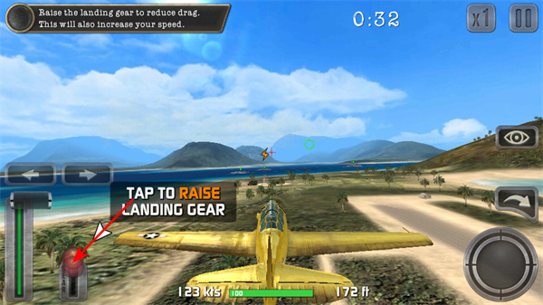 4、调整飞机飞行高度和方向,应对复杂的海陆空场景,保障安全关键操作,结合场景元素灵活操作。