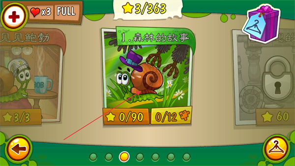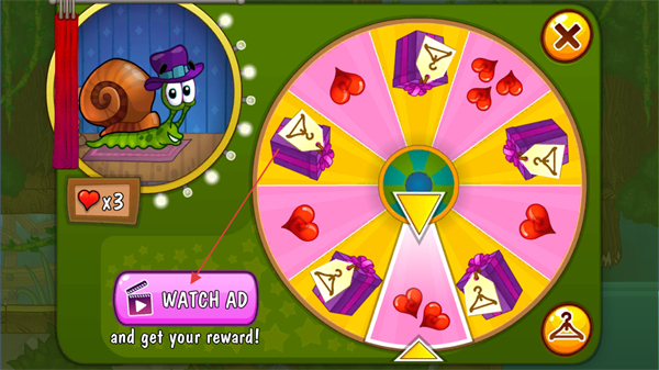 2、点击关卡选择页面右上角的礼盒抽奖,通过观看视频可以获得鲍勃的闯关生命值或是服装奖励。