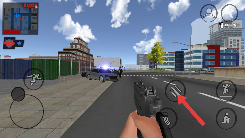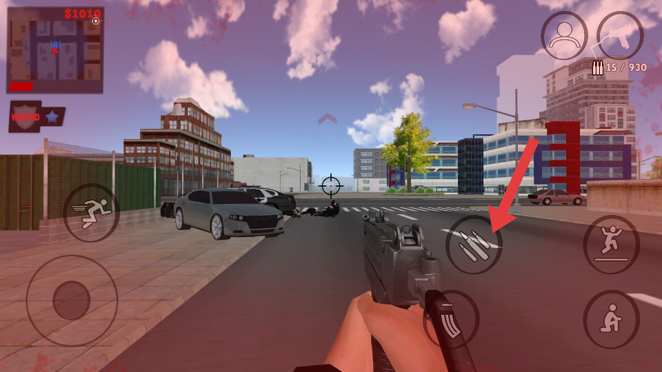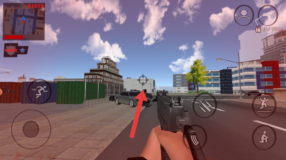 1、进入城市场景后,先熟悉基础操作,通过移动摇杆控制角色在街道、建筑间移动,练习切换与射击按键的配合。