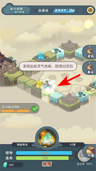 4、游历过程中触发灵气充裕的提示时,等待场景结算完成,这是获取额外资源的重要操作,会提供灵石等稀缺资源,加速养成节奏。