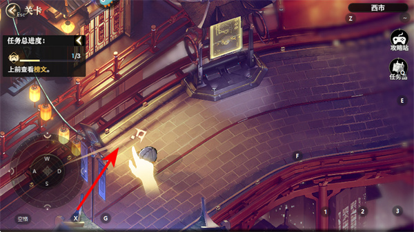 2、按照箭头指引点击场景中的互动物品如纸张,可推进任务进度,完成主线任务关键操作。