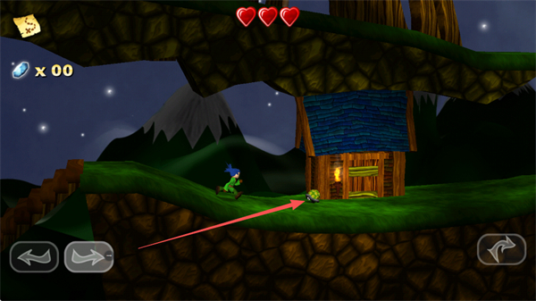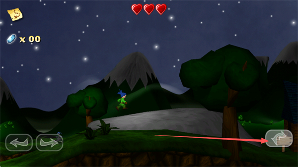 3、点击右侧跳跃键,让角色跳跃过坡,前往新区域。