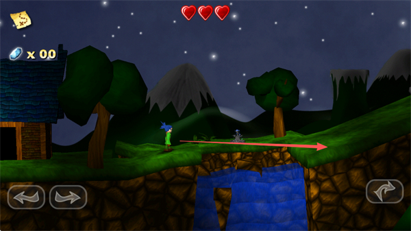 2、操控角色在野外向右移动,跨越地形障碍,继续冒险。