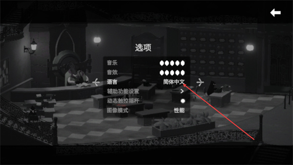 3、在OPTIONS的LANGUAGE选项中选择简体中文,界面会切换为中文显示,完成游戏语言的设置操作。