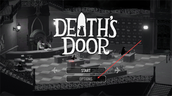 1、这是死亡之门的启动界面,界面显示游戏标题及START、OPTIONS按钮,点击OPTIONS即可进入游戏的设置页面调整相关选项。