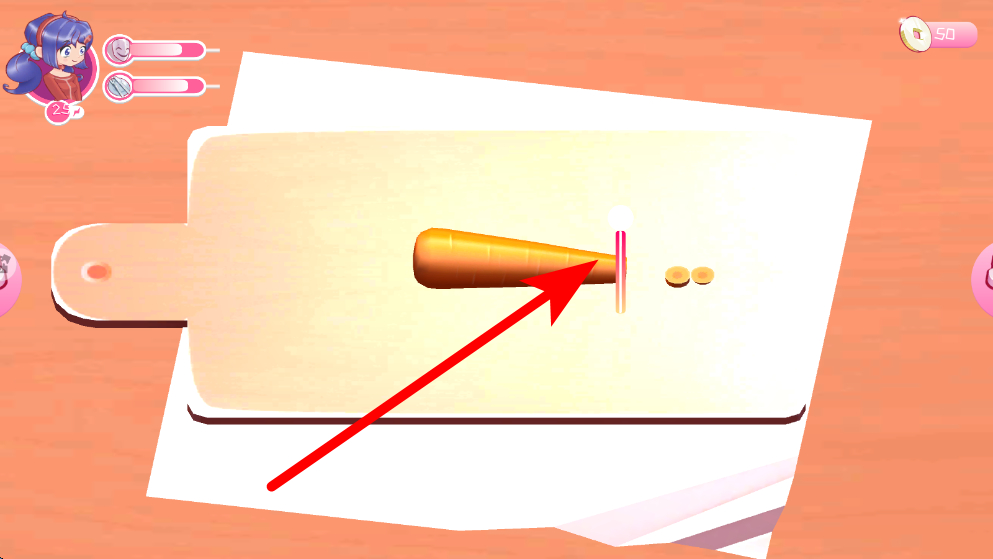 4、最后切菜做饭,获取食材后,进入切菜环节,按照提示对食材进行切割处理,之后进行烹饪操作,做出美味的食物,体验做饭的乐趣。