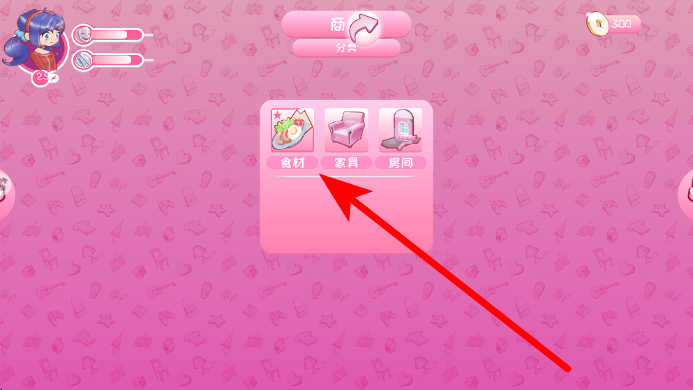 3、然后购买食材,当感觉饿了需要做饭时,进入商店界面,在食材分类中挑选所需的食材,为做饭做好准备,满足饮食需求。