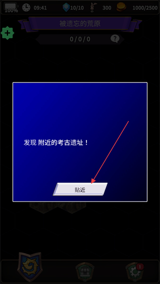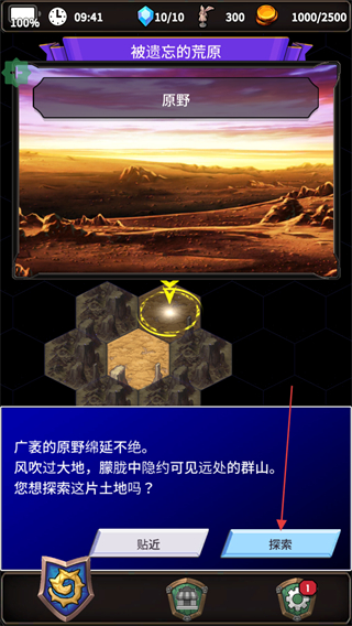 2、如果土地模块中有遗迹或其他事件将会触发弹窗提示,点击贴近按钮进入剧情。