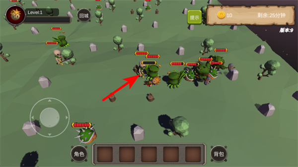 2、进入关卡场景后,通过移动控件操控角色在地图中移动,靠近敌人触发战斗,利用场景中的地形调整站位,集中攻击单个敌人以快速清理目标。