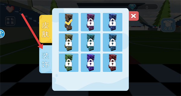 1、在游戏主界面,点击右侧的皮肤按钮,进入皮肤装饰界面。