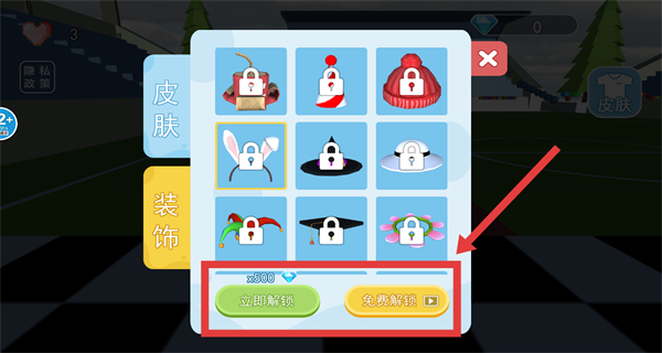 4、在弹出的解锁选项中,可选择消耗500钻石点击立即解锁,或点击免费解锁观看广告来解锁该装饰。