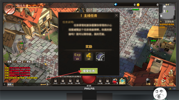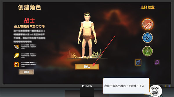 3、点击屏幕内的电脑进入网游,点击确定在网游中创建角色。