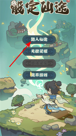 1、在游戏初始界面,点击踏入仙途按钮,这是开启修仙流程的关键操作,点击后将进入宗门选择的环节,开启修行冒险。