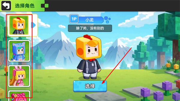角色列表提供多款方块化萌趣形象如小龙、猫耳角色,不同角色不仅外观风格各异,后续还会解锁专属的冒险天赋,让角色选择不只是选外观,更能影响冒险效率。