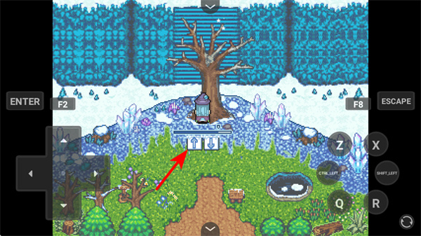 4、按照箭头指引,点击界面中的上下箭头按钮,可操控角色向对应方向移动,调整角色在场景位置。