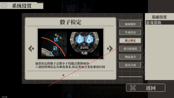 3、查看骰子检定说明,明确通常情况下骰子点数小于技能点数即为成功,部分特殊检定有难度要求,根据检定结果推动游戏进程。