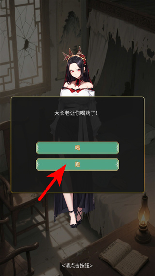 4、在跑进殿堂要干嘛的选项里,点击跑的选项,可继续选择逃离的行动,推进后续剧情。