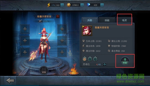 每个角色最多可以携带3名英雄出战,选择自己喜欢的英雄,让战斗变得更轻松更有趣,选择已经拥有的英雄,可以打开该英雄的操作界面,在此界面中可以对英雄穿戴装备、升阶、技能升级和吸灵操作,还可以查看到佣兵的属性以及出战状态,英雄等级始终与角色等级保持一致,不会高于或低于角色等级。