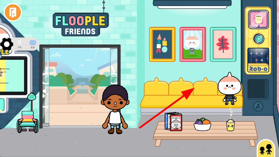 3、进入小镇场景后,可以手机点击滑动操控角色在不同区域活动,比如来到摆放着黄色沙发等家具的室内区域,感受小镇的生活氛围。