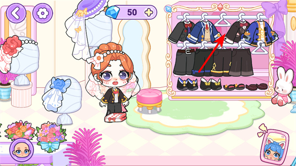 4、挑选服装道具为角色换装,服装更换可塑造不同风格的角色形象,打造出协调且精致的效果。
