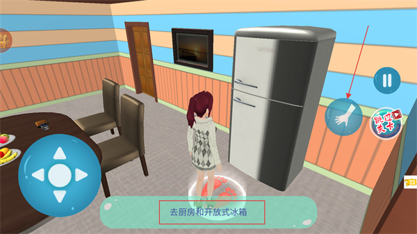 2、通过左下角虚拟摇杆控制角色移动,遇到可互动物体时,点击右侧手型按钮即可进行互动操作。