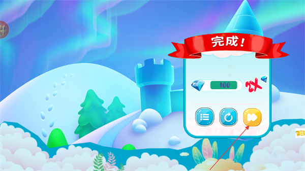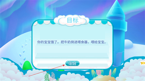 4、成功完成任务后会获得钻石奖励,点击黄色箭头按钮可继续挑战下一个任务,不断解锁新的照顾宝宝任务内容。