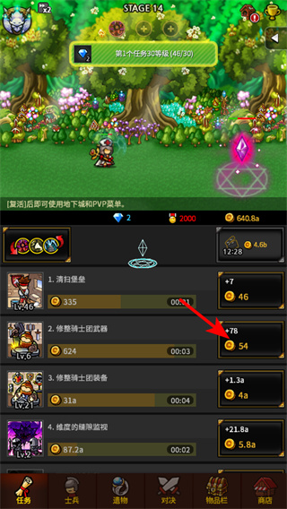 2、依照红色箭头指引,点击任务右侧的资源奖励栏,可领取任务产出的进化资源,这是推进单位进化核心步骤。