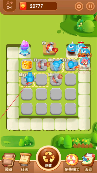 3、拖动方格内的炮台进行合成,只能合成相同等级的炮台。