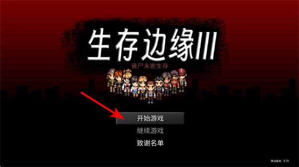 1、在游戏主界面,点击开始游戏按键,可进入生存边缘III的丧尸末世生存冒险。
