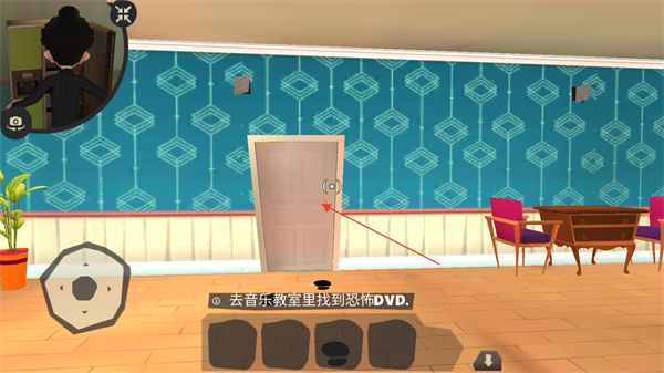 3、找到音乐教室的门,点击门把手进入,悄悄寻找目标物品。