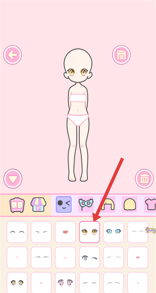 3、在分类下选择具体的装扮部件如眼睛样式,点击应用到角色上。