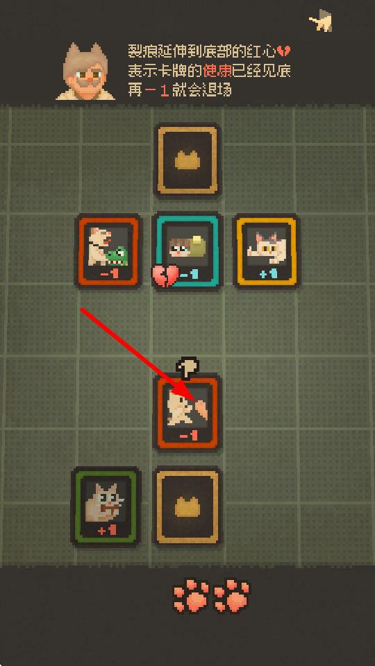 3、注意卡牌的使用次数,当卡牌的红心裂痕延伸到底部时,再使用一次就会退场,需合理规划卡牌的使用。
