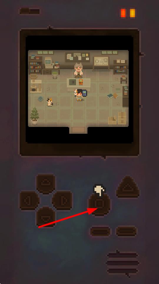 1、在像素风格的冒险游戏中,通过虚拟按键控制角色在房间内移动,这是探索场景、与NPC互动的基础操作。