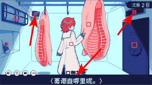 3、在房间内,依次调查肉、门等区域,推进探索流程。