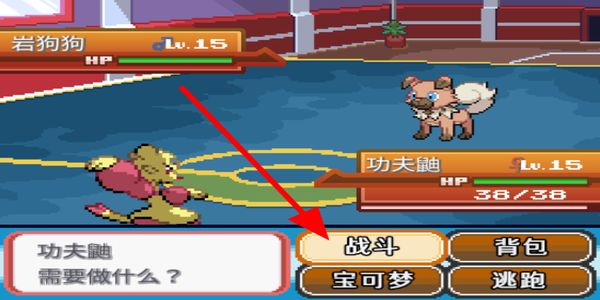 1、玩家接收NPC发起的挑战,进入游戏的对战场景,准备操控宝可梦参与战斗。