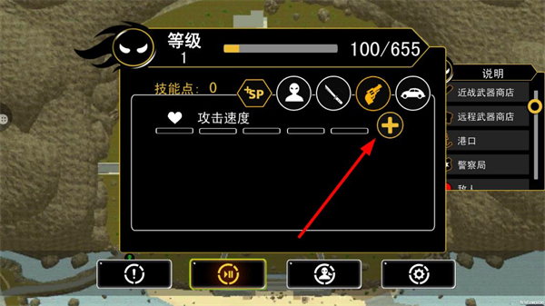 4、点击攻击速度旁的加号按钮,消耗技能点提升攻击速度,从而让角色在战斗中更快发动攻击。
