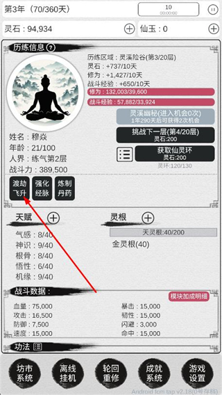 1、角色满足渡劫条件后,找到并点击进入渡劫界面。