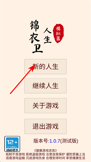 1、开启游戏,点击新的人生按钮,可开启锦衣卫人生的全新流程,进入游戏的核心玩法。