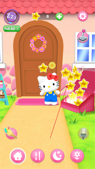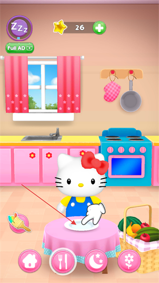 支持互动对话、喂食、洗澡、哄睡等多种玩法,点按即可触发凯蒂猫的回应与声音,日常照料细节丰富,强化陪伴感,让养成过程充满真实的互动乐趣。