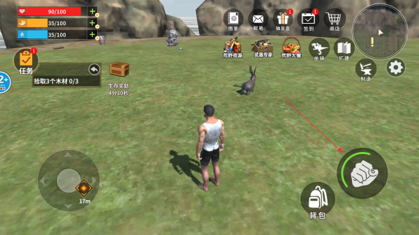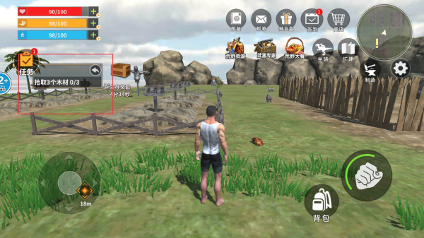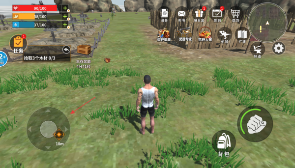 2、在生存场景中,查看左侧任务提示,若显示“拾取3个木材”,就操控角色移动,寻找带有木材的区域或相关道具。