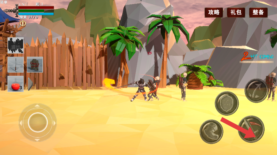2、对战时紧盯屏幕上方的生命值条与连击数,命中敌人可累积连击数,通过轻攻击+移动调整位置+轻攻击循环。