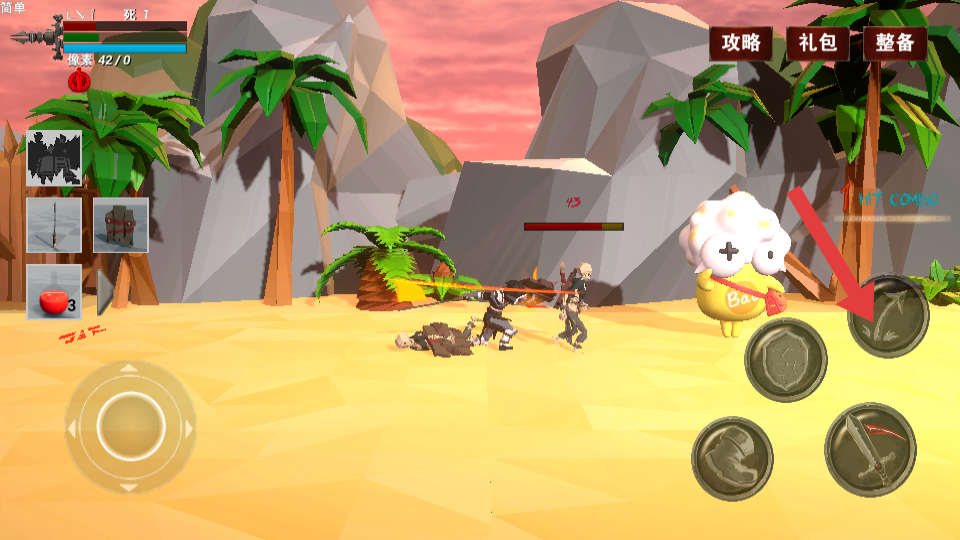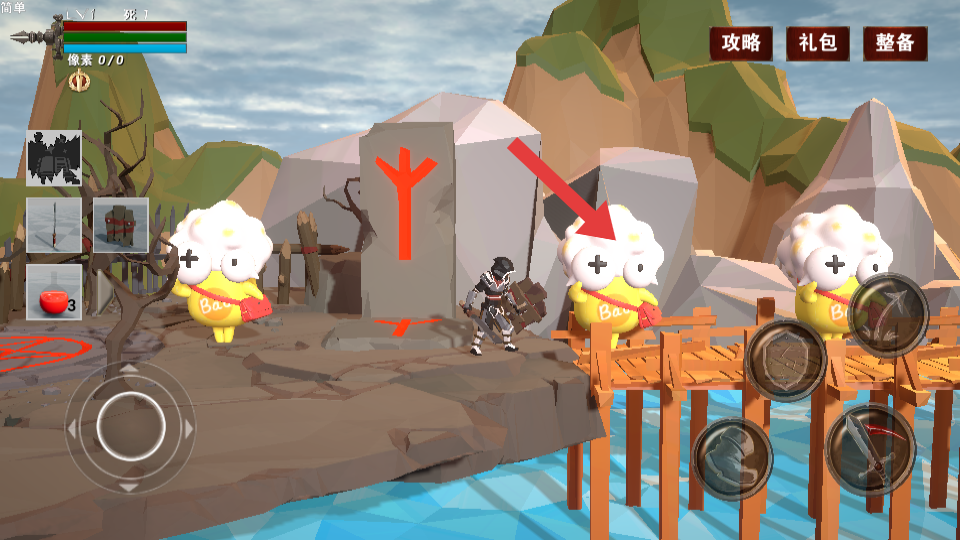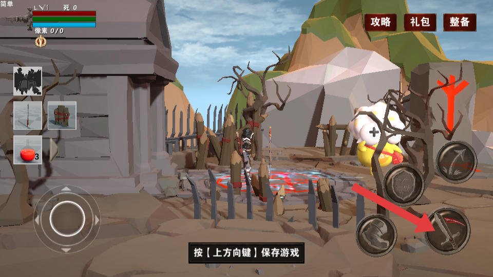 1、先通过方向键控制角色移动,搭配攻击按键练习基础战斗操作,初期面对敌人时,优先单次攻击后快速后撤。