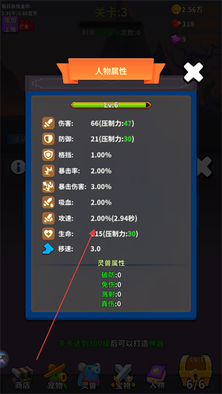 4、人物属性界面可以查看到人物当前的各项属性,如伤害、暴击率等。