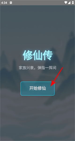 1、在游戏启动界面,点击红色箭头指向的开始修仙按钮,即可进入修仙传修仙流程,开启养成。