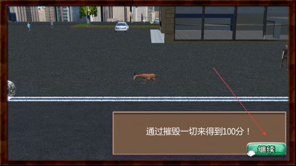 2、开始尝试破坏操作,控制山羊朝着路边的路灯移动,待靠近路灯后无需额外按键,山羊会自动撞向路灯,路灯倒塌后屏幕上方会弹出分数增加的提示。